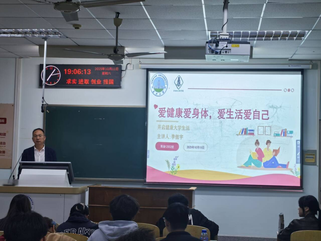 以班级为单位,组织大一和研一新生召开了以“爱健康爱身体,爱生活爱自己”为主题的心理健康教育班会。此次班会聚焦新生入学后的身心适应关键期,通过PPT讲解与知识问答相结合的形式,为新生送上实用的健康指南。在PPT讲解环节,辅导员与班主任先是系统普及心理健康常识,帮助新生了解入学后可能出现的心理波动,传授情绪调节、压力缓解的实用方法;随后又针对生理健康知识进行细致讲解,涵盖合理作息、科学饮食、适度运动等与日常生活密切相关的内容,引导新生建立良好的生活习惯。